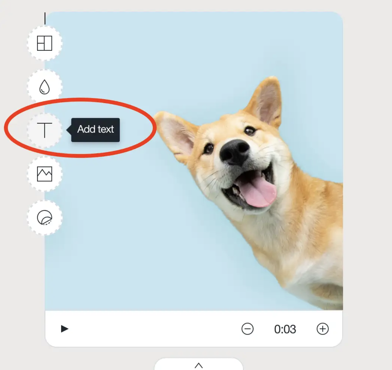 Select a block from your timeline, then click on the T icon on the side of the block in the workspace. Once you click the Add Text icon, you’ll have the option to add a title, subtitle, quote, or attribution. Click on the text fields to change the size, color, and add legibility options for your text.
