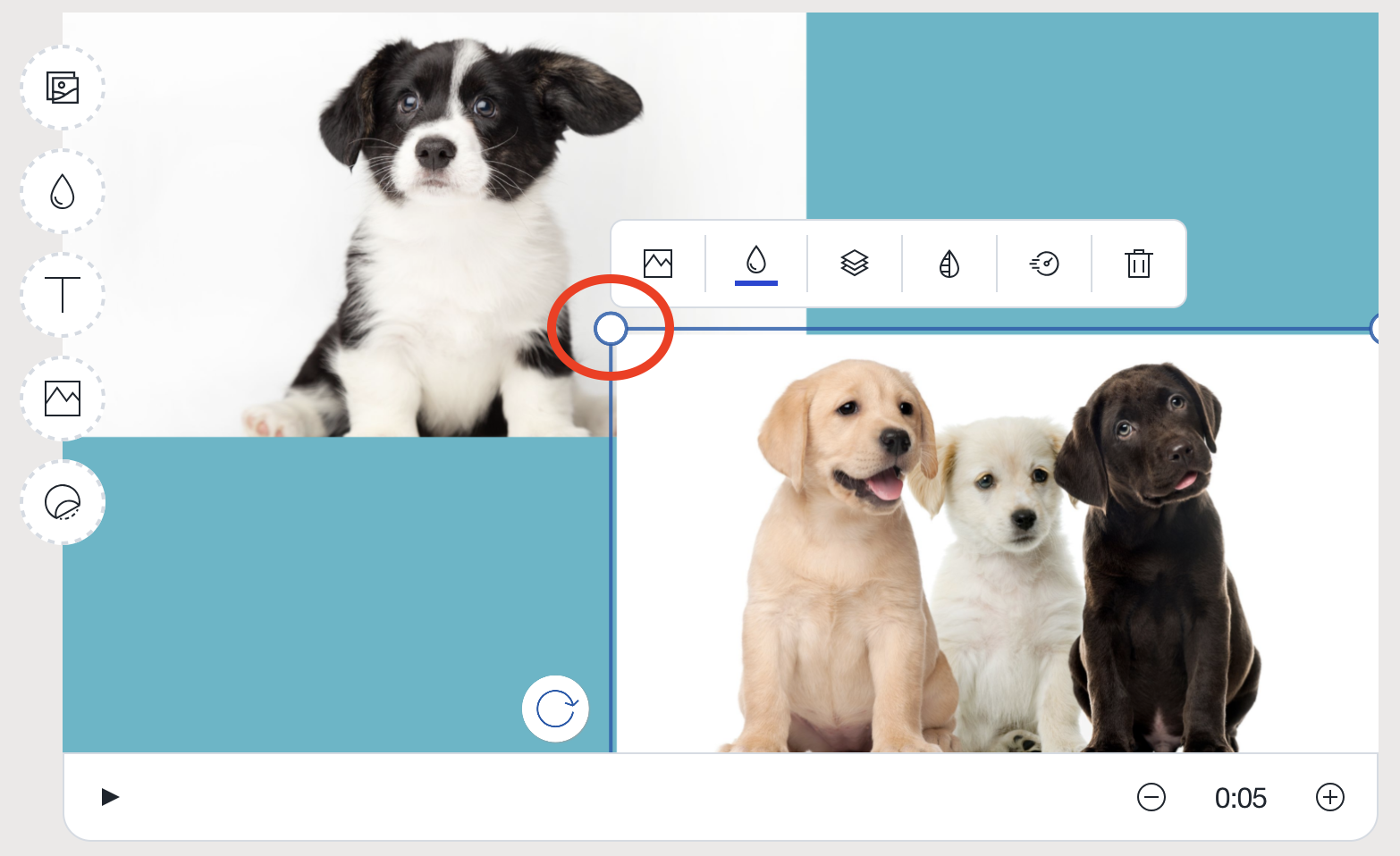 To adjust the size of the Media Frame, click on the frame you want to resize. Click on the circles on one of the corners of your Media Frame, and drag it until it's the size that you want.