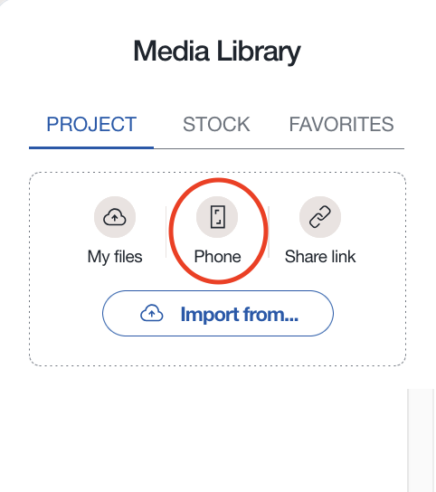To import media from your phone head over to the Project tab in the Media Library. Click Phone to get started.