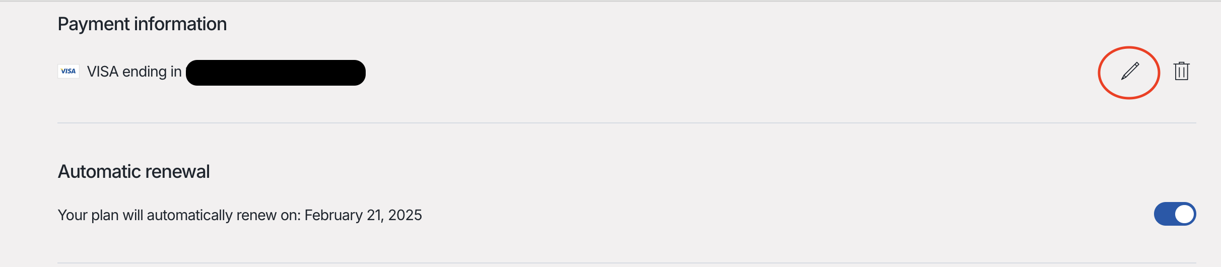 You can change your payment method by clicking on the pencil icon to the right of your payment information. If you delete your payment method and we are unable to process the payment your subscription will revert to the Free Forever plan.